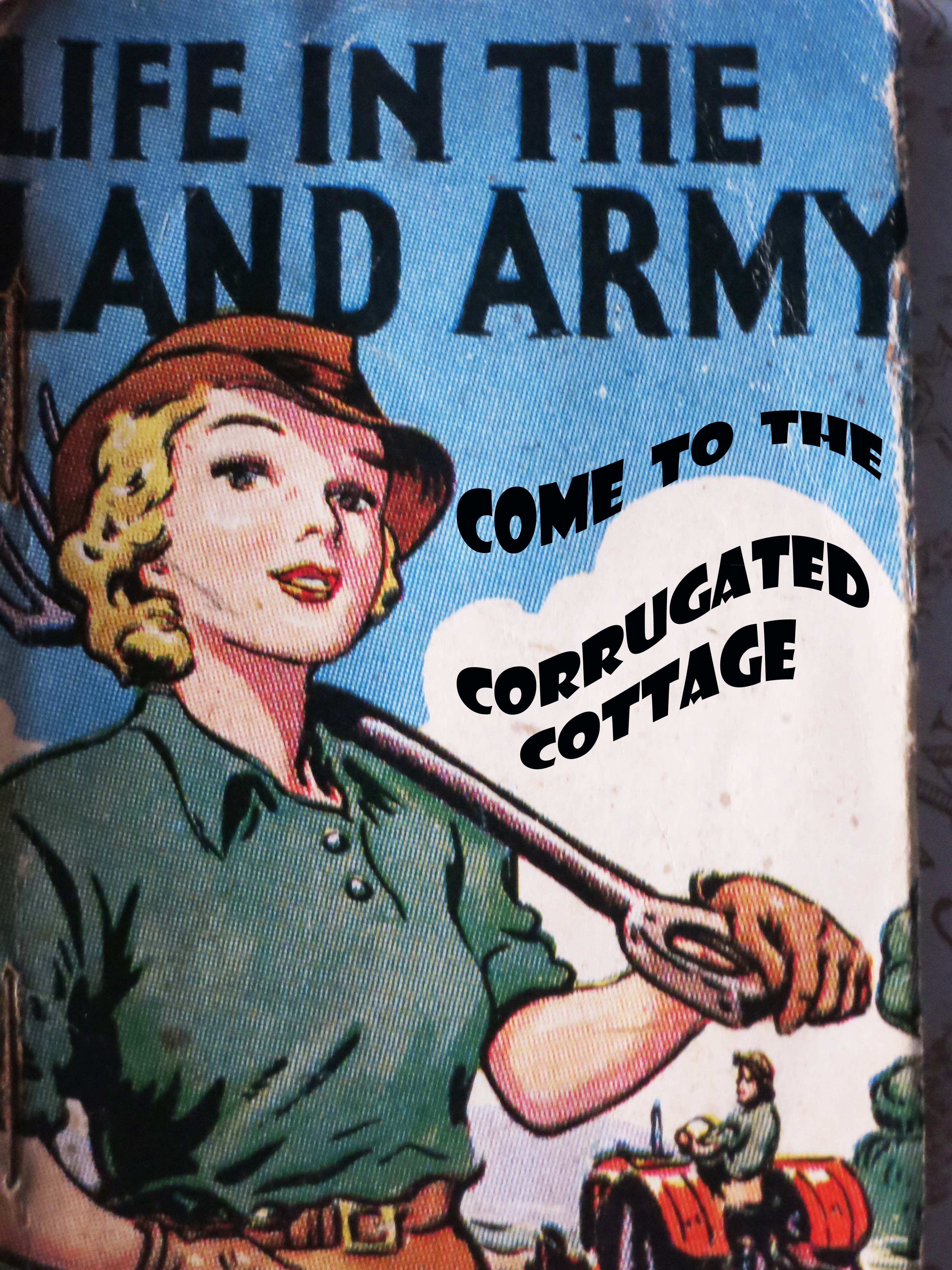 The corrugated cottage was originally used as my office and sculptor’s studio. When I was repairing the floor in what is now the bedroom, I found some newspapers under there as insulation. I was surprised to find they were dated June, 1940! Curious, I spoke to a friend; the local historian, who mentioned the possibility that land girls were billeted in the cottage (probably temporary/prefab) during the war.